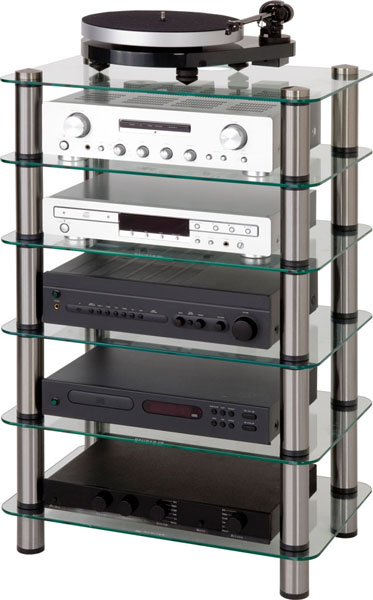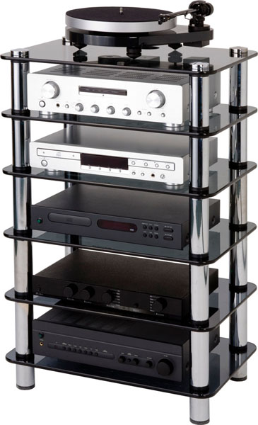 - Six-tier Hi-Fi stand with 610mm-wide shelves